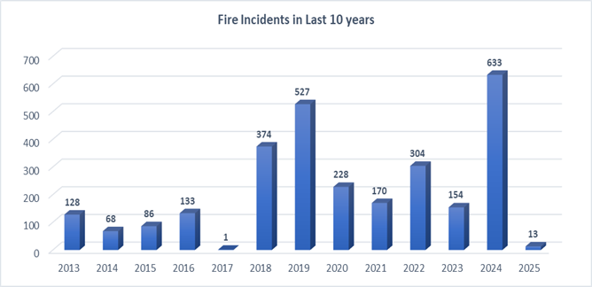 - Historical fire incidence suggests that the highest fire incidence occurred in 2024, followed by 2019 and 2018.